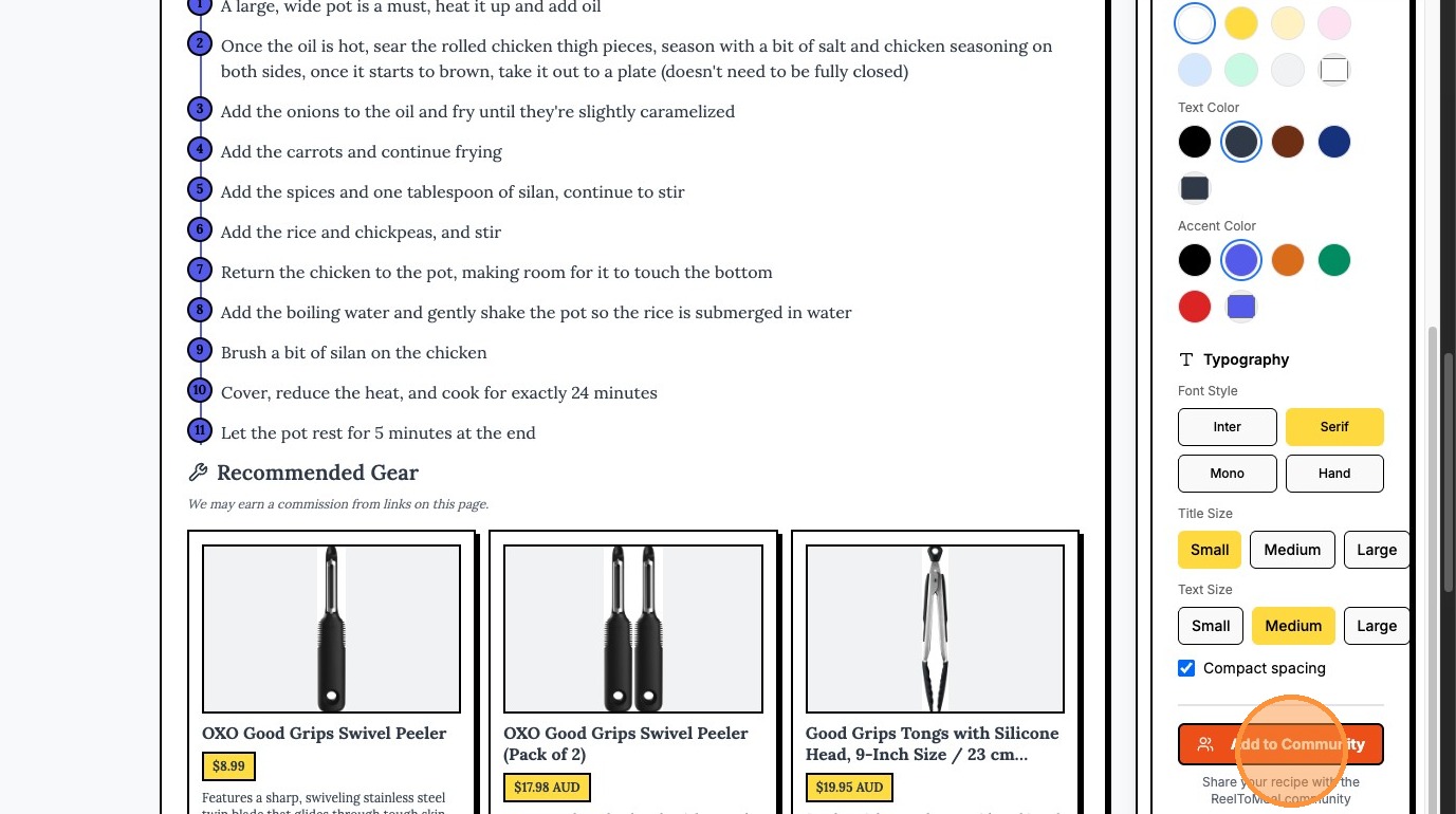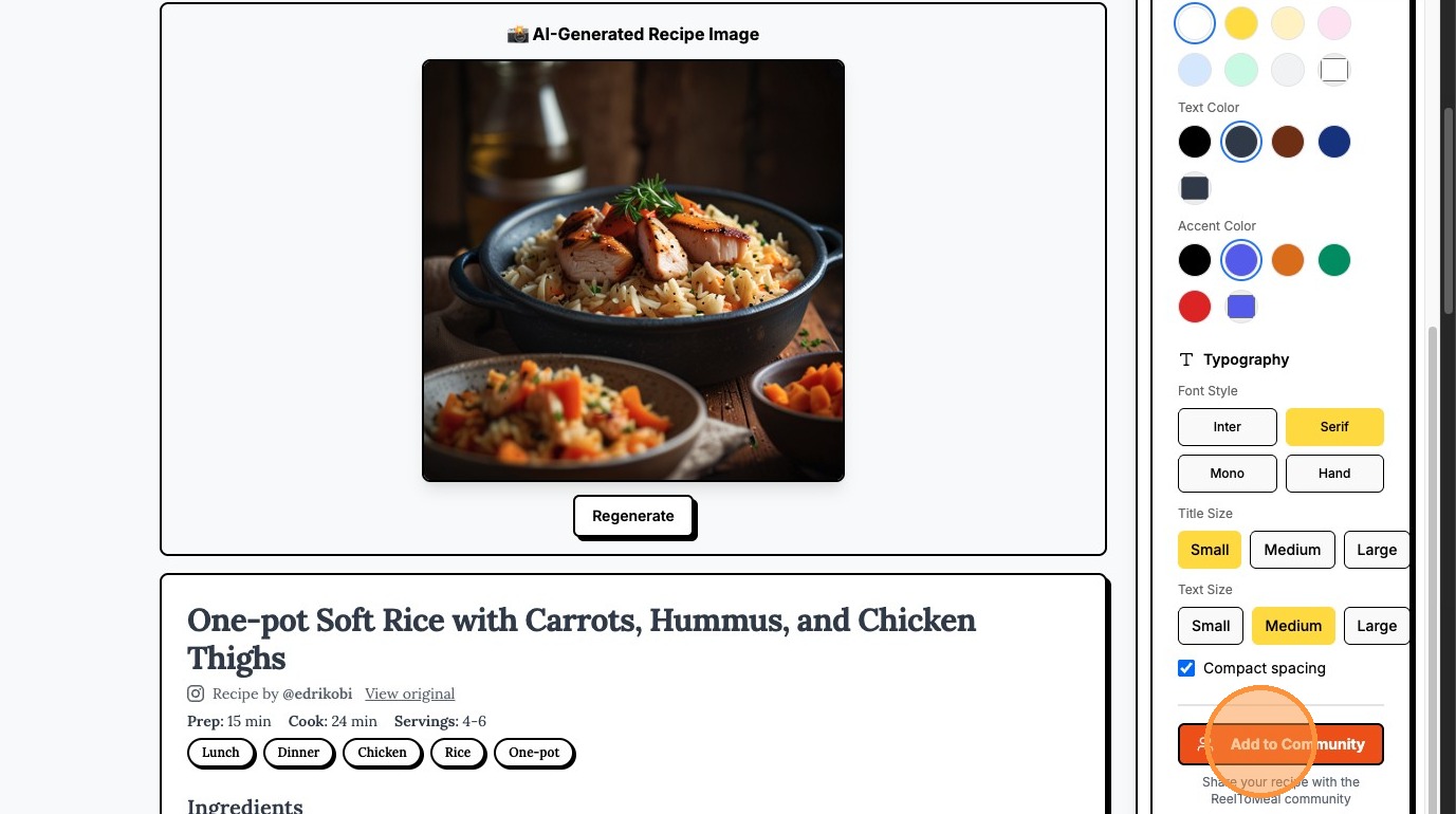 Once you are happy with all your changes and the new photo, click "Add to Community" to publish your recipe!