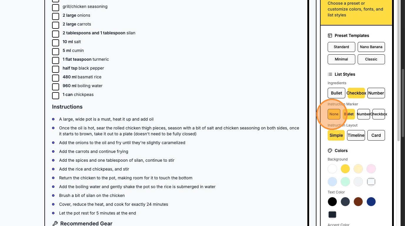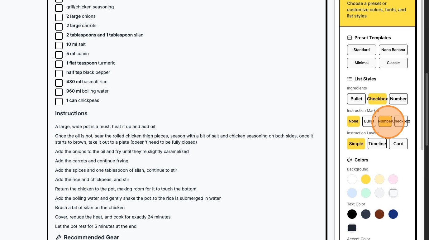 Choose your preferred list style. Click "Checkbox" for interactive lists.
