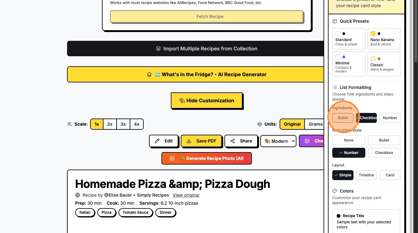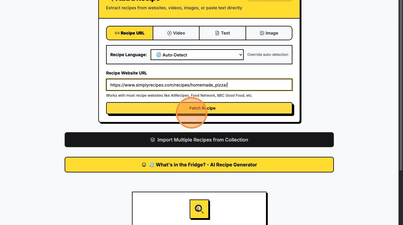 4. Extract: Click ✨ Fetch Recipe to load the ingredients and steps.