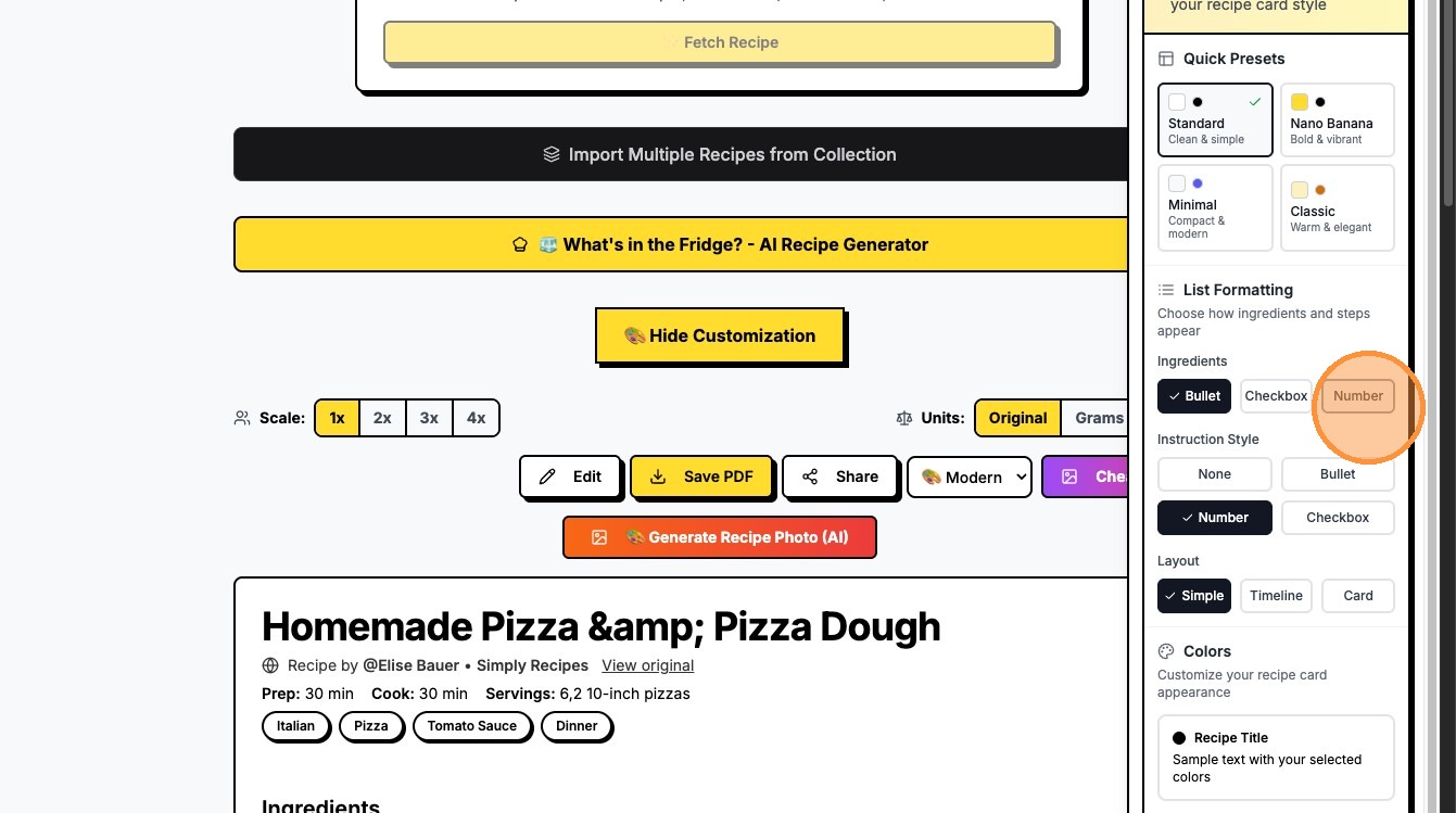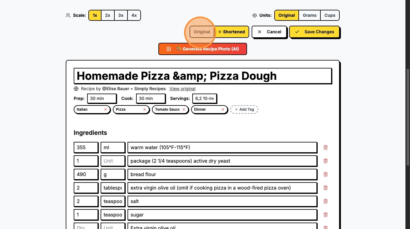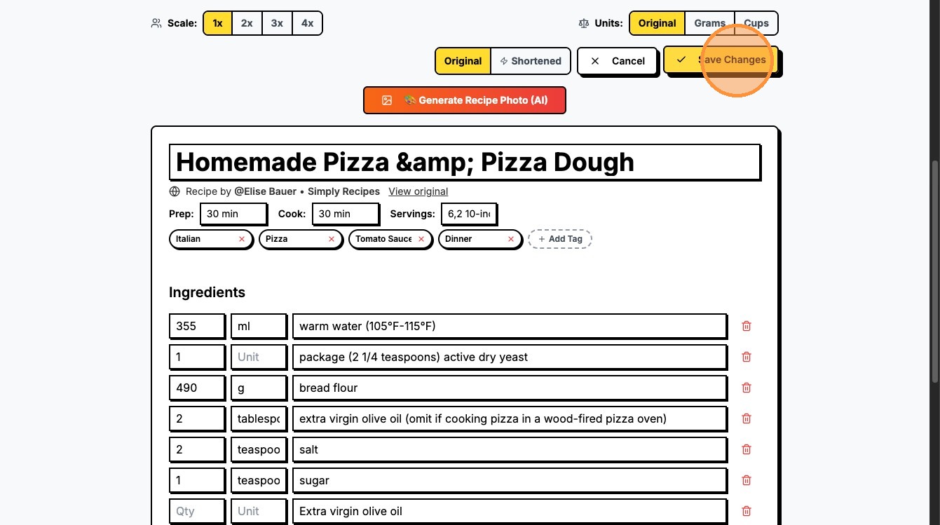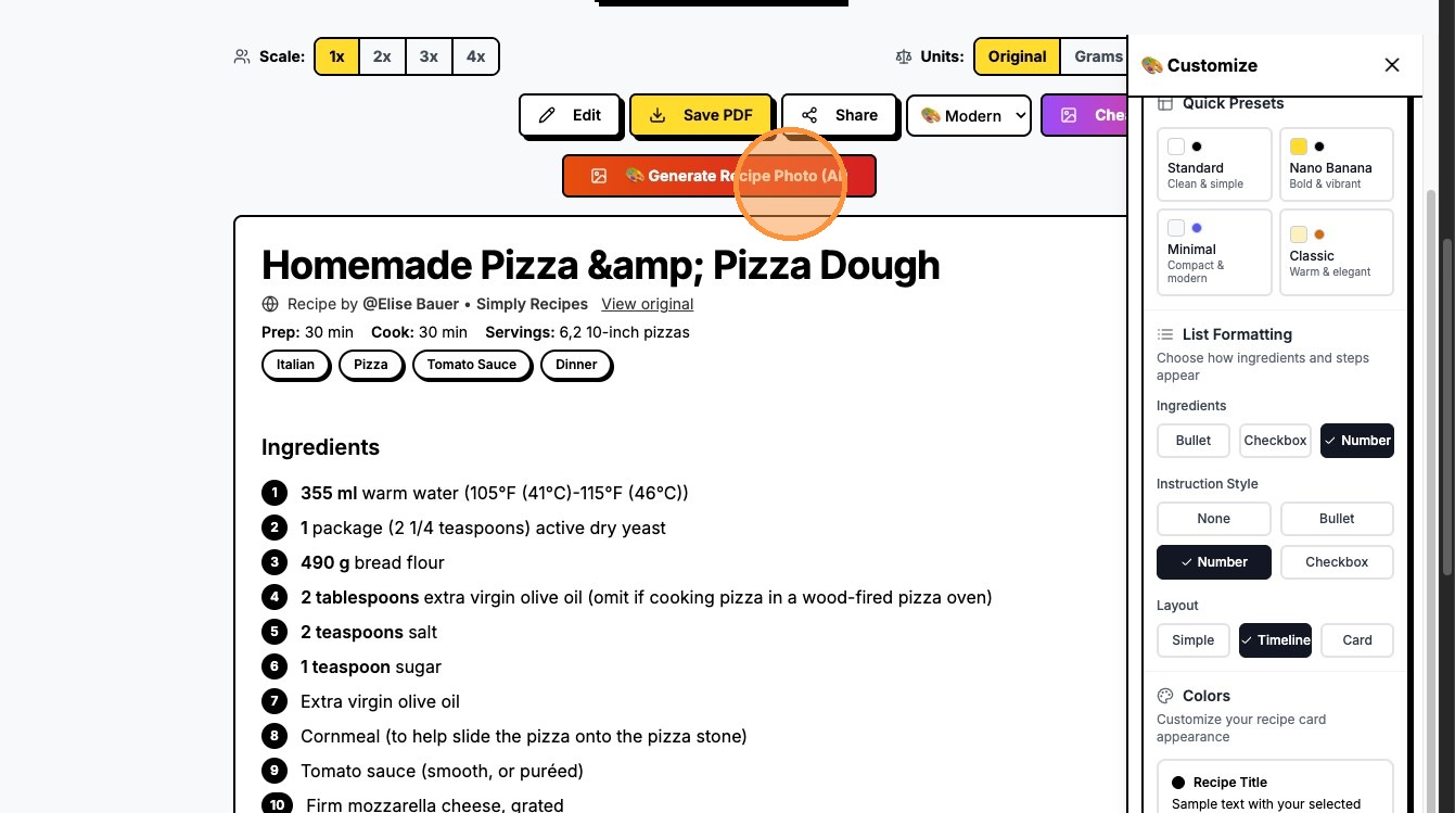 13. Add Visuals: Click 🎨 Generate Recipe Photo (AI) to create a custom image for the dish