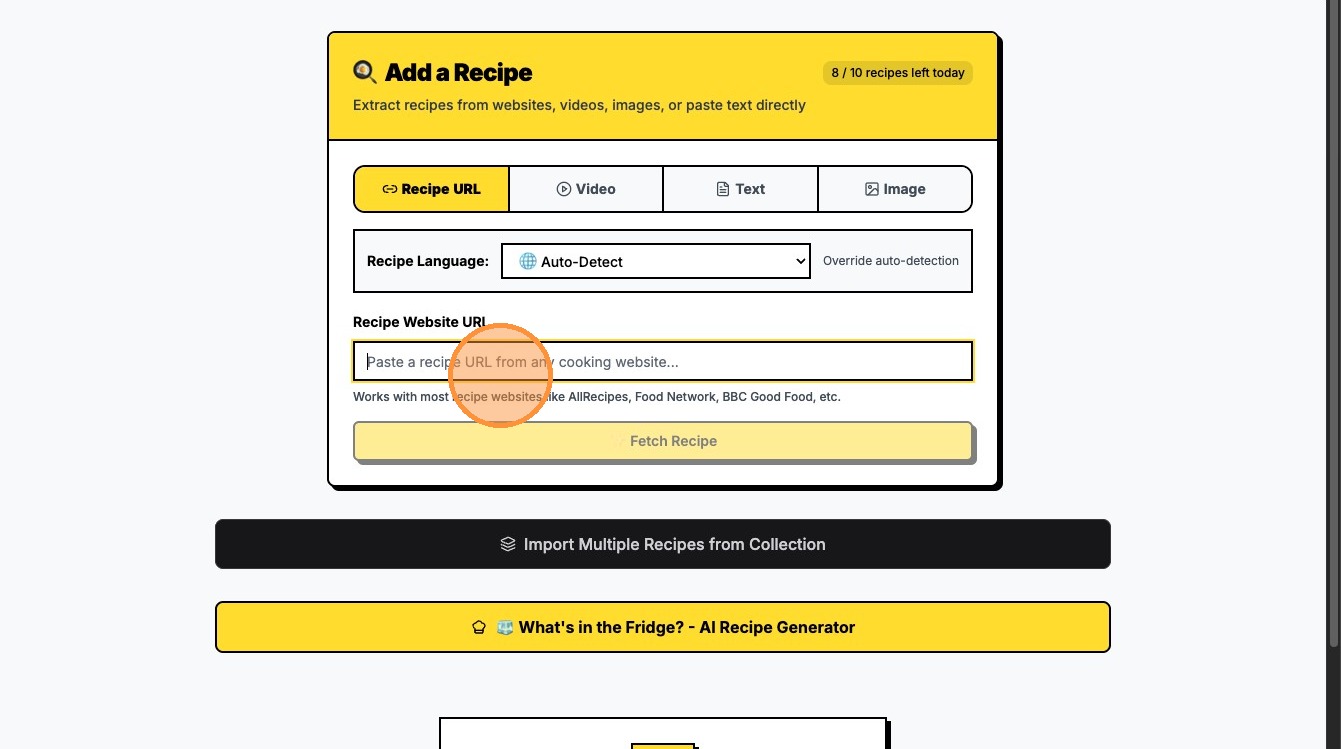 3. Paste Link: Paste your recipe link (Press Cmd + V or Ctrl + V).